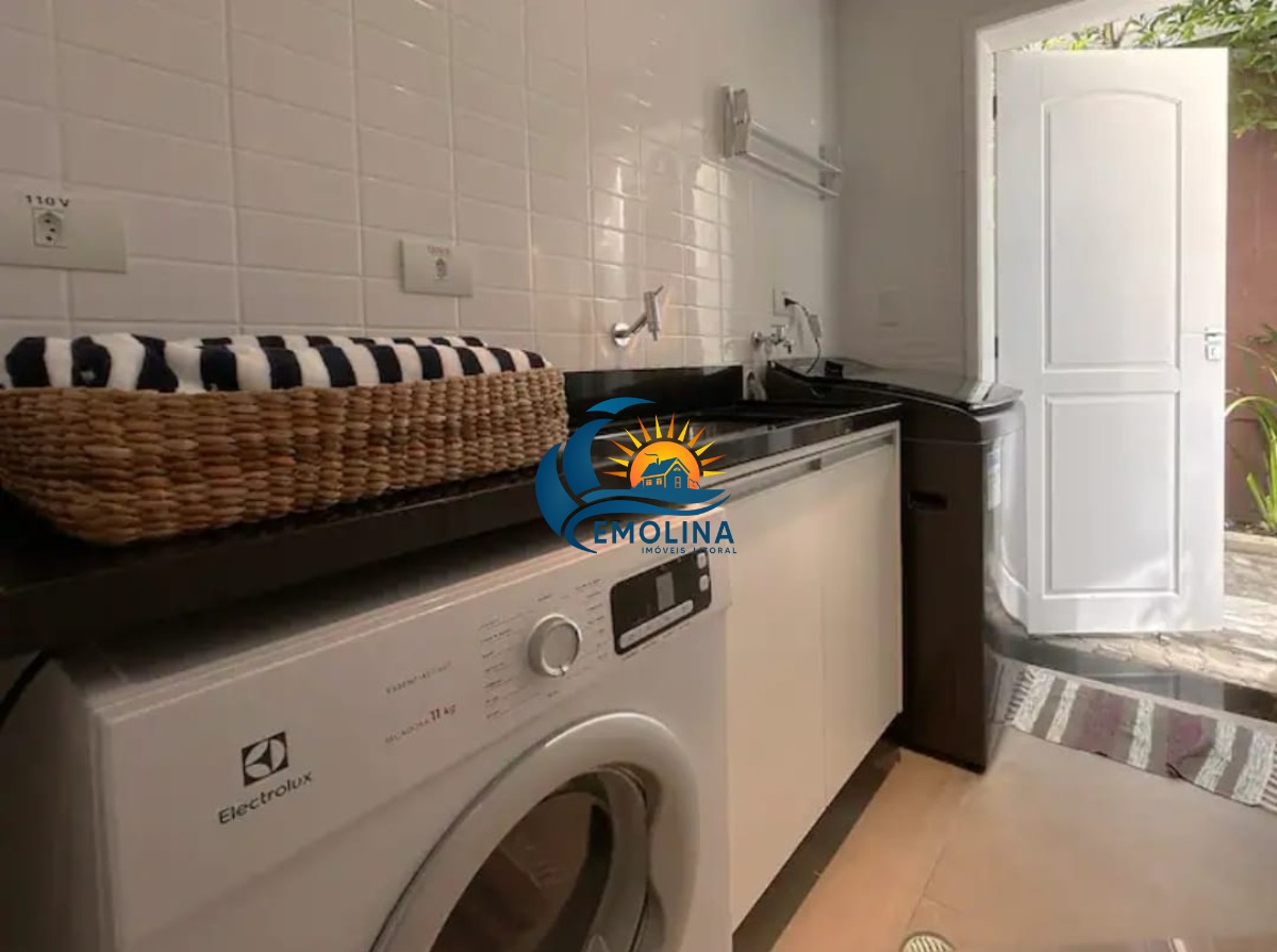 A cozinha é bem equipada e a lavanderia oferece funcionalidade no dia a dia.